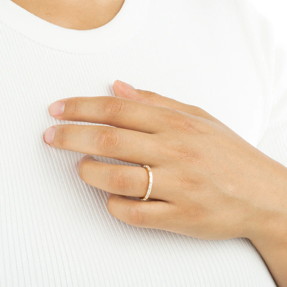 Introducing our Lab-Grown Diamond Baguette Eternity Ring, a refined piece set with 18 lab-grown baguette diamonds totaling 1.62 carats. Crafted in 18k gold, this ring showcases the sleek, elongated beauty of baguette-cut diamonds, arranged in an unbroken circle of brilliance.