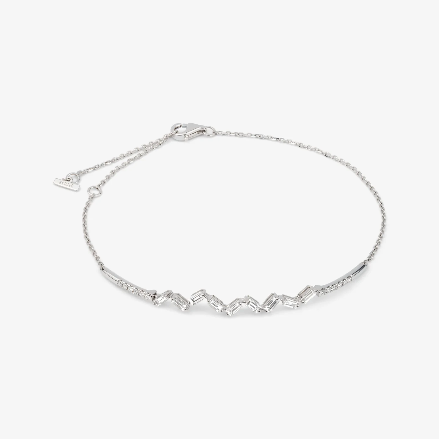 Striking and contemporary piece meticulously crafted in 18K solid white gold. This bracelet features a captivating zig-zag pattern, adorned with a total of 21 conflict-free round and baguette diamonds, showcasing a total carat weight of 0.62.